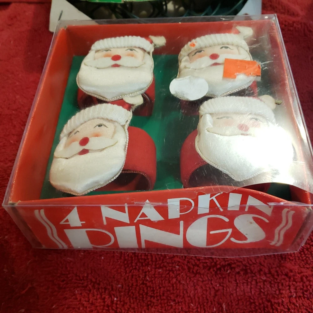 Get into the holiday spirit with this vintage Christmas decorations lot! It includes a midget light for adding some cozy ambiance, a Santa napkin ring to dress up your table, and a festive Santa cup for sipping on your favorite holiday drinks. Perfect for collectors and anyone looking to add some vintage charm to their holiday decor. Get ready to spread some Christmas cheer with these unique and fun decorations.
