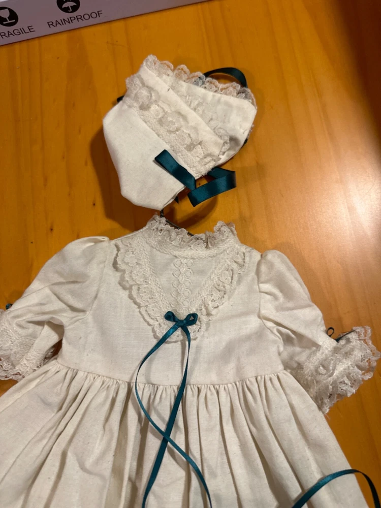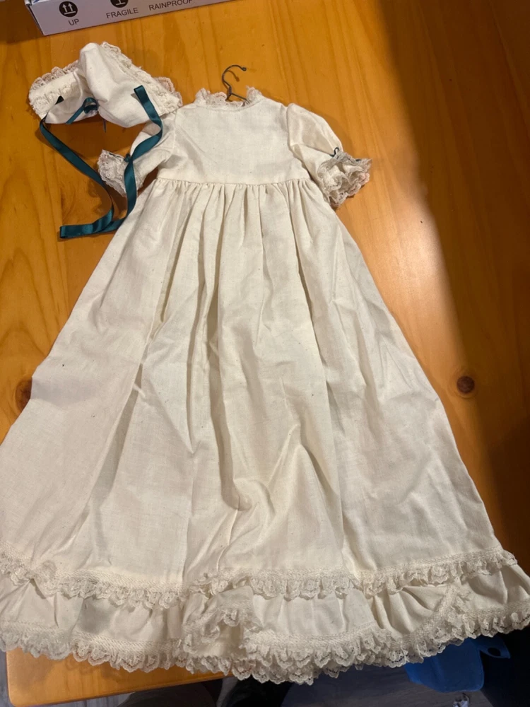 This beautiful vintage baby doll dress is a stunning addition to any collection of children's vintage clothing. The dress features a delicate white color and is expertly hand sewn for a unique and special touch. Perfect for a little girl's wardrobe, this dress is a must-have for any collector of vintage clothing. The dress is ideal for special occasions and will make your little one feel like a princess. Add this beautiful piece to your collection today!