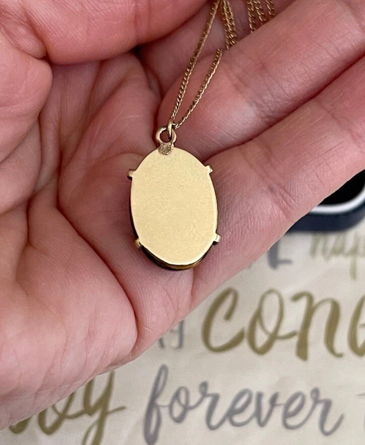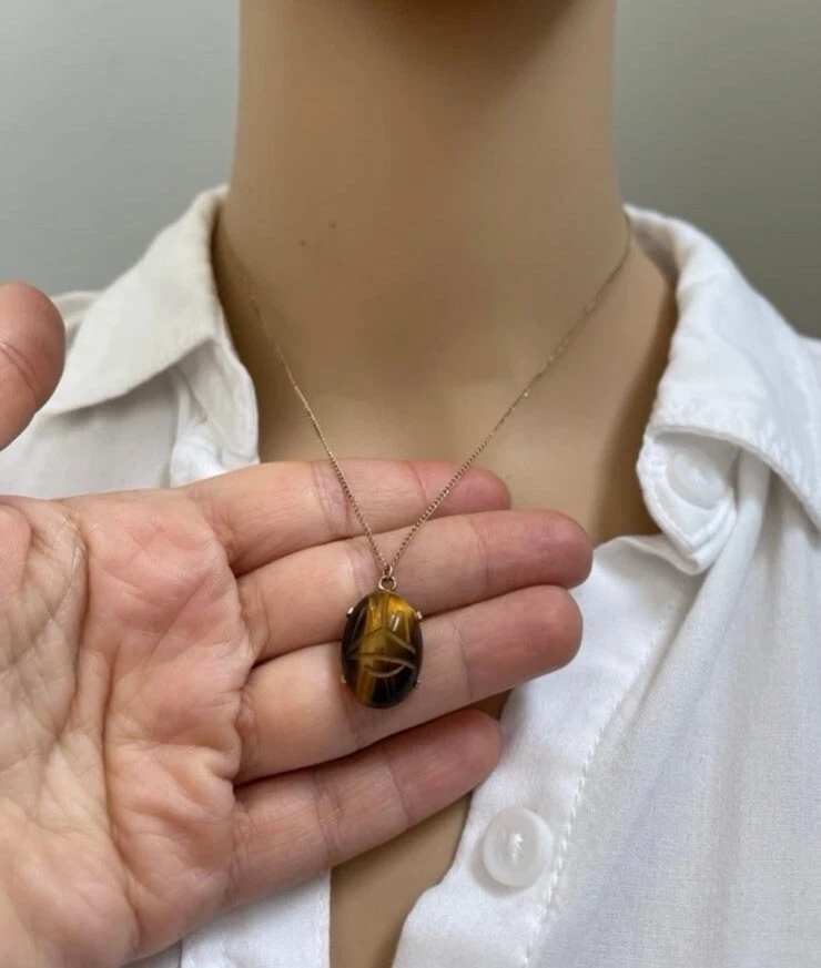 vintage necklace w cat eye stone pendant 1/20/12kg , covert glass charm Please ask any questions prior to purchase. Pictures are provided as part of the description, and all measurements are to be considered approximate. Reasonable offers will be considered. Very good gift! Fast shipping! Always pack very carefully in new box! Photos are accurate! Thank you!