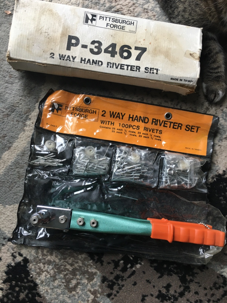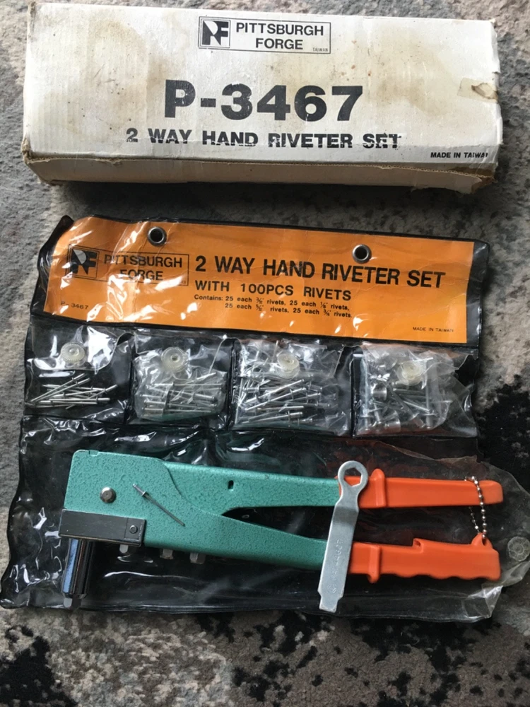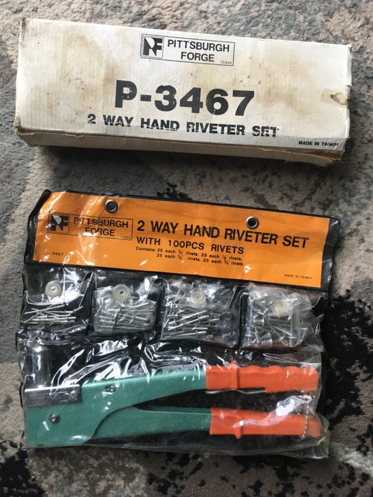 Pittsburgh forge 2 way hand riveter set 10 1/2 inch 4 different size rivets