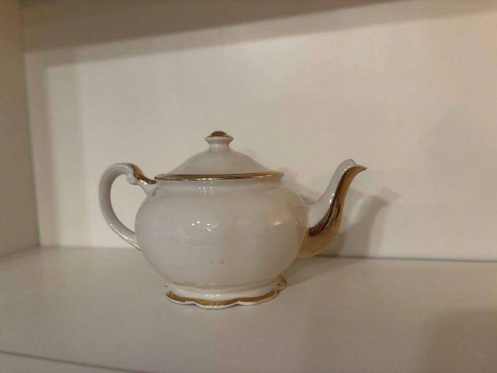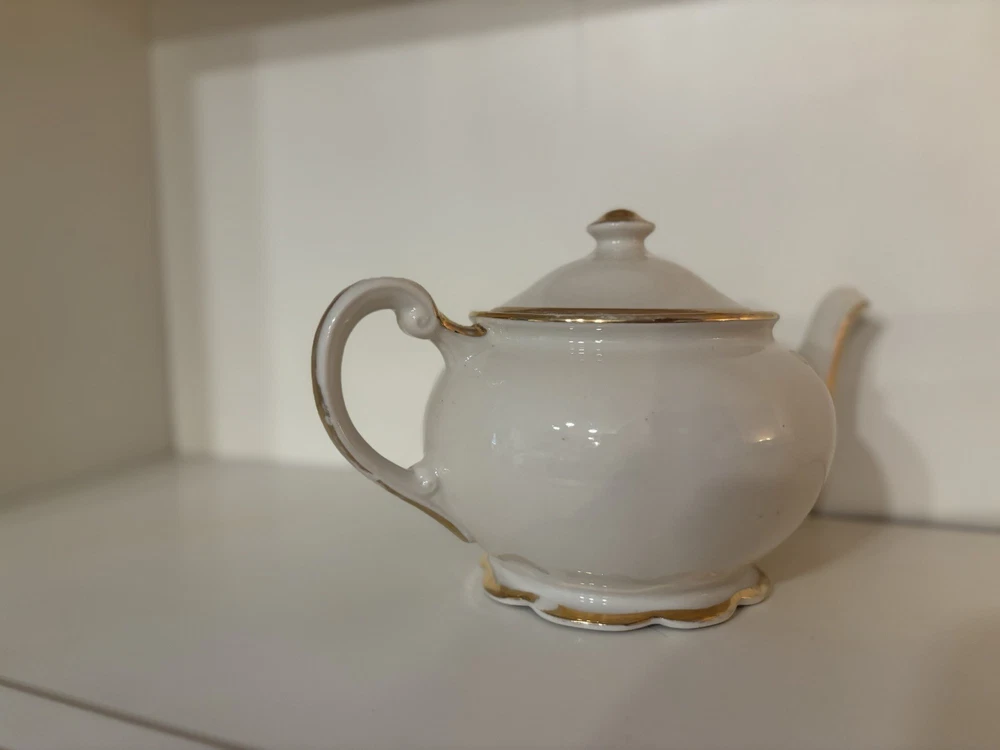 Homevintage porcelain teapot, of a "Courting Couple" or "Fragonard" style tea set.