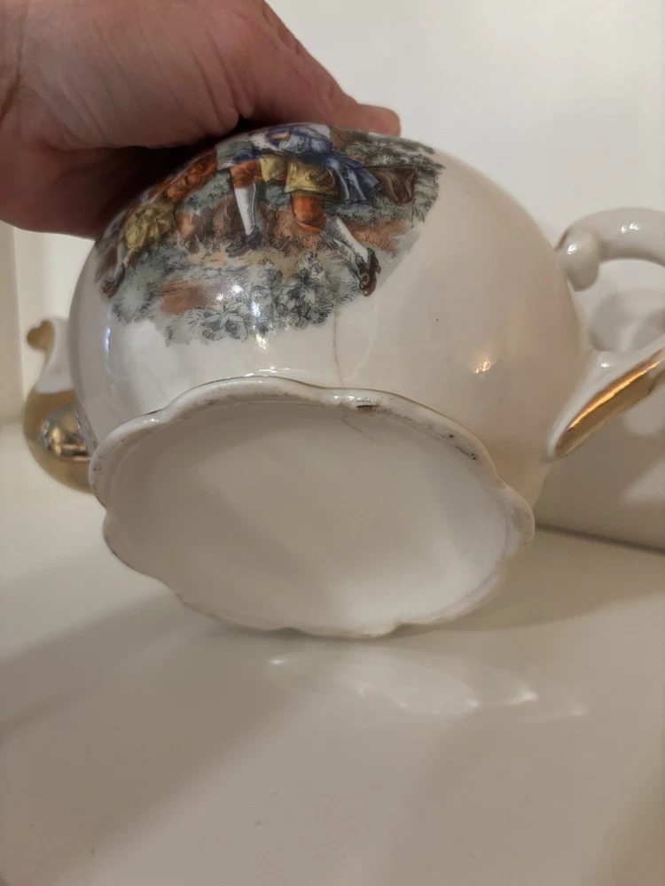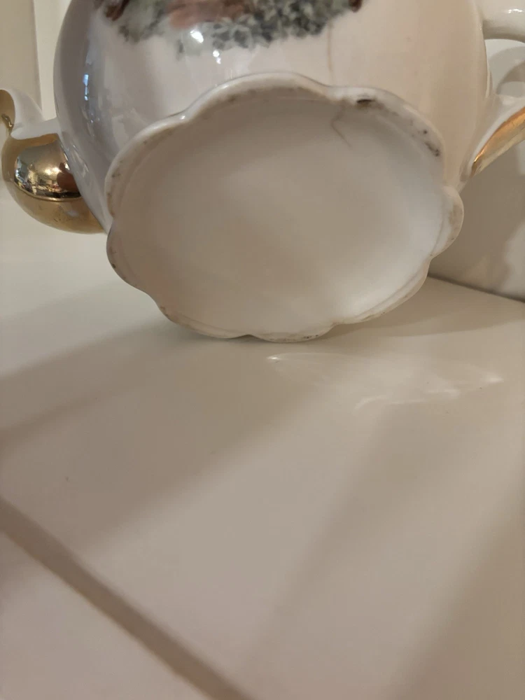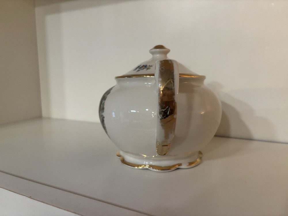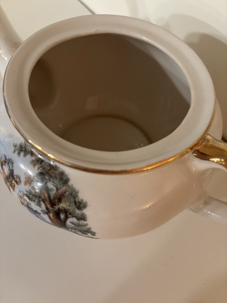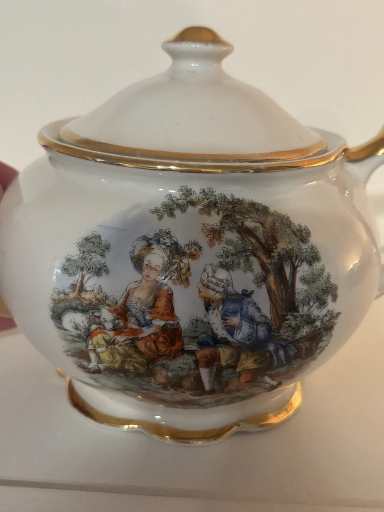 This item is a vintage porcelain teapot, likely part of a "Courting Couple" or "Fragonard" style tea set.