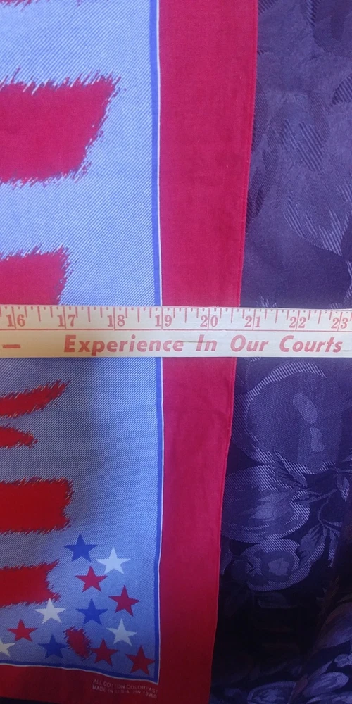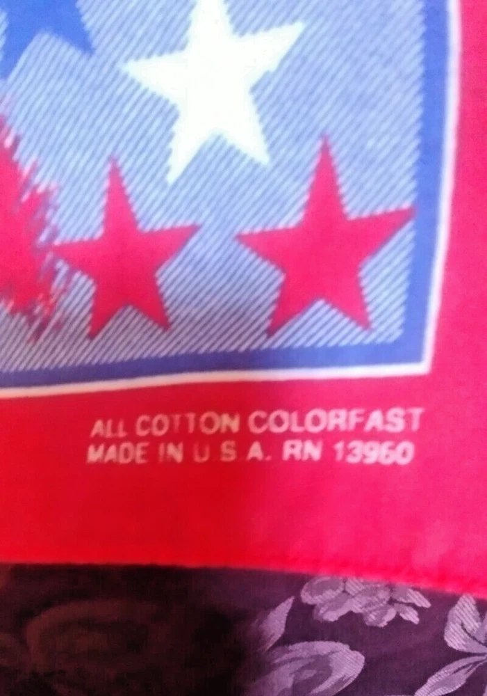 This vintage bandanna is a unique addition to any collection. The red, white, and blue colors give it a classic look, while the cotton material ensures durability. It's perfect for adult unisex use and was made in the United States. This bandanna has a variety of purposes, from acting as a handkerchief to being a fashion statement. It falls under the categories of vintage accessories and clothing, shoes & accessories. Get your hands on this special item today!