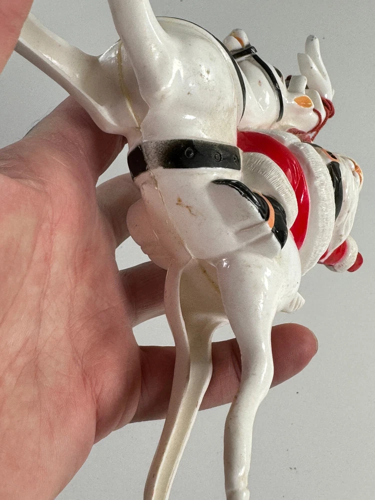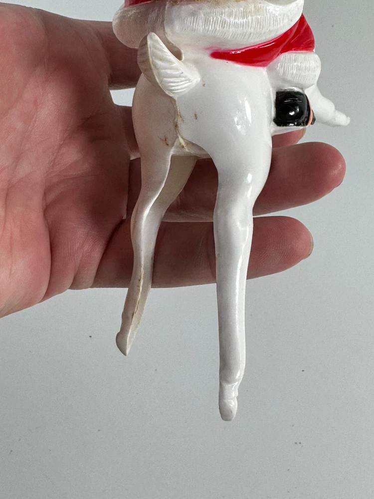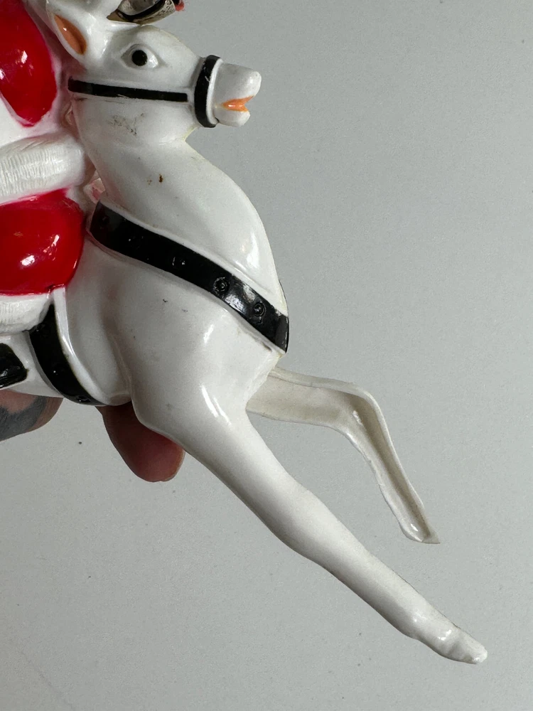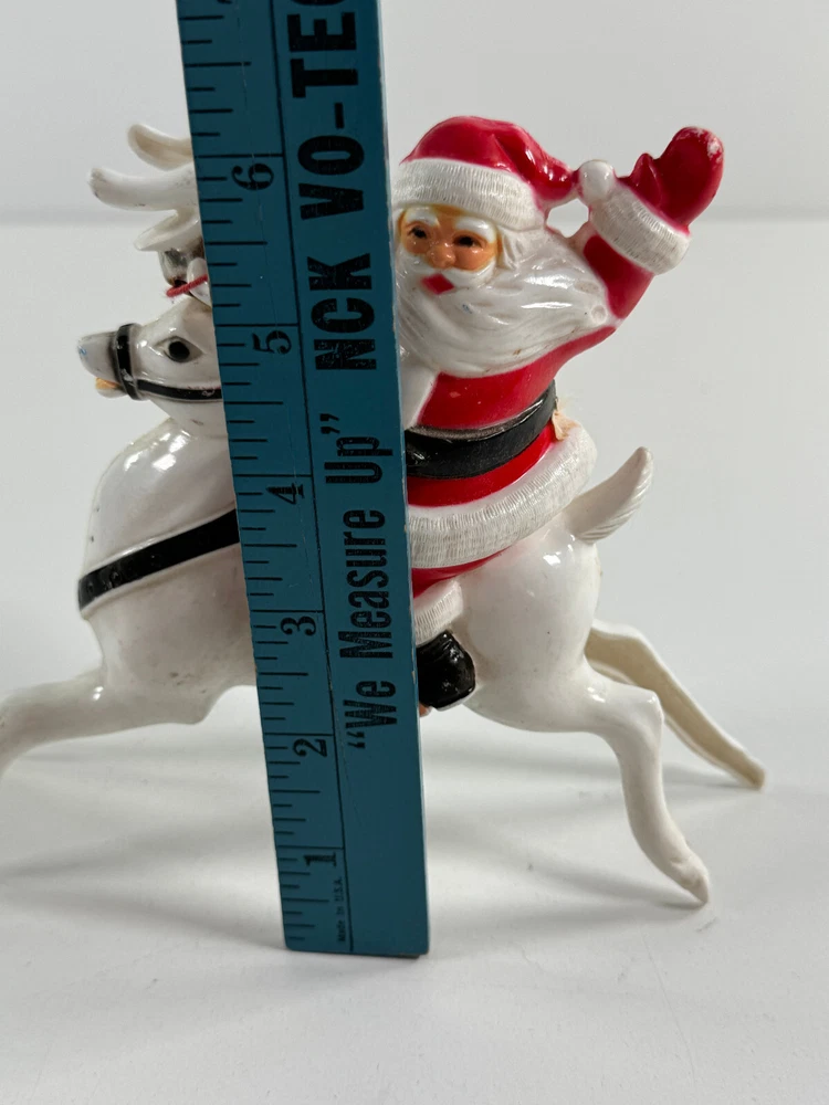 vtg Christmas Xmas 50s 60s Santa Claus on Reindeer hard plastic