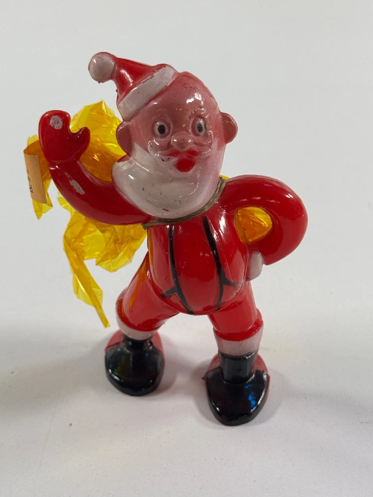 $ 39.6vtg Christmas Xmas 50s 60s Santa Claus on Reindeer hard plastic