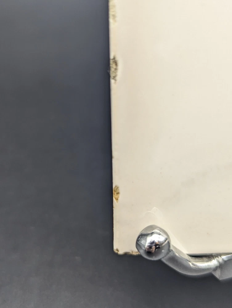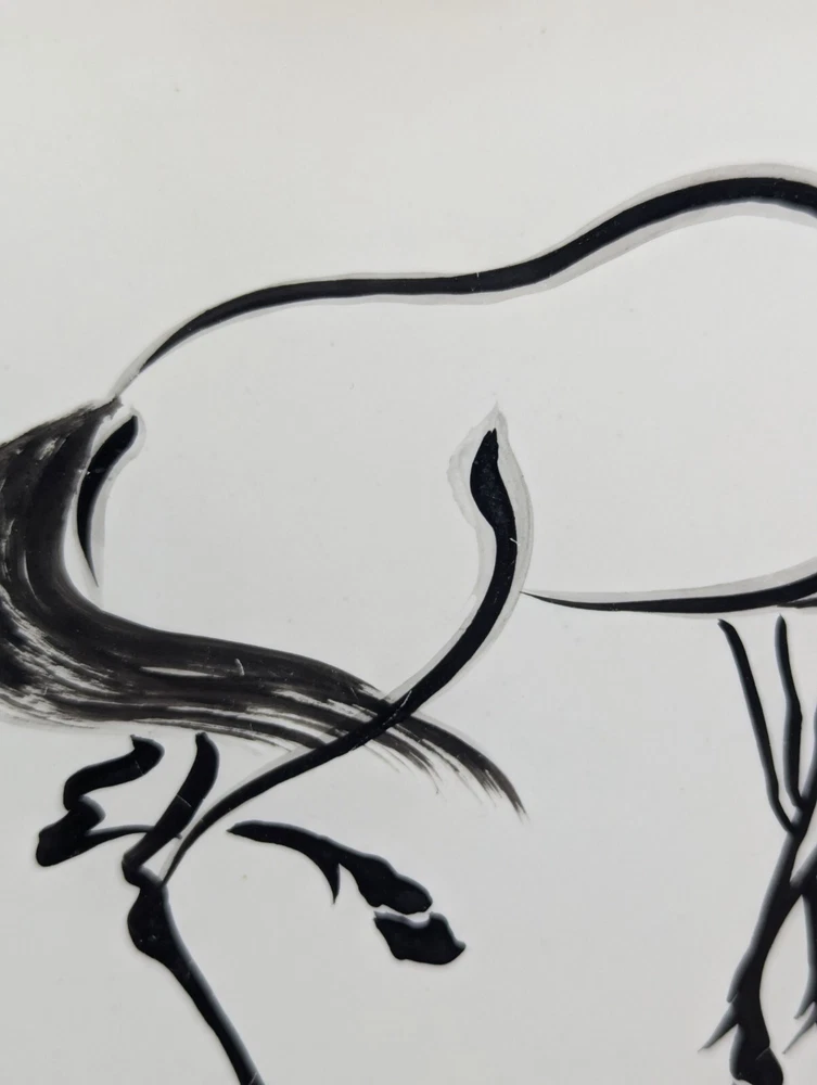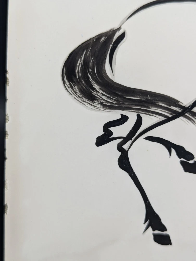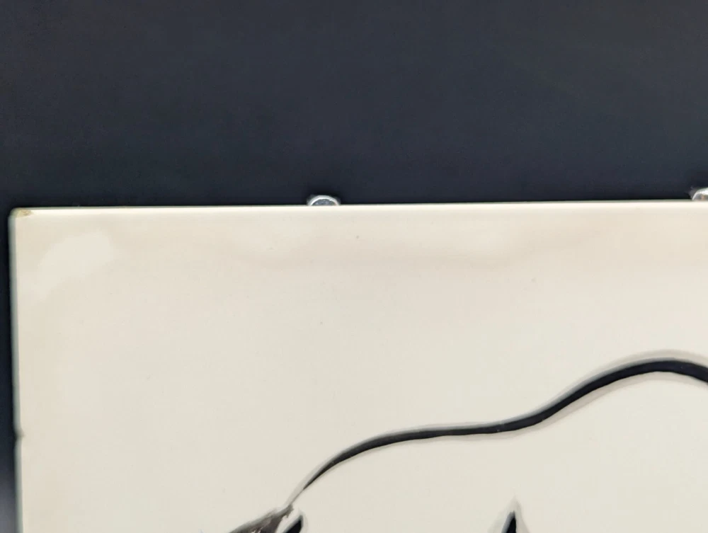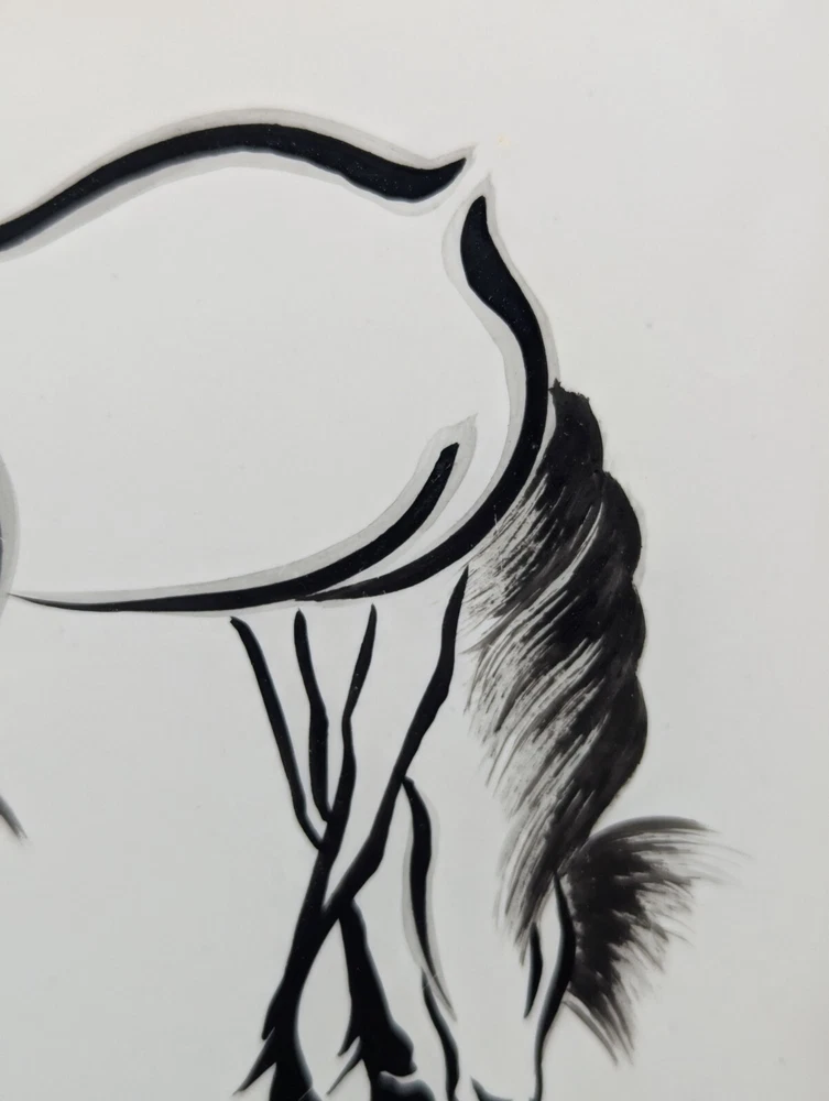 This tile has some discoloration and some chipping around the edges. This vintage Japanese artist's tile features a beautiful horse grazing scene. Measuring 6 inches by 6 inches, the piece is perfect for wall art or as a trivet. The ceramic material and Asian style make it a unique addition to any collection. The item is suitable for all occasions and is perfect for adults. It is a printed finish and is by artist Urushibara Mokuchu. This collectible is a must-have for horse lovers and collectors alike.