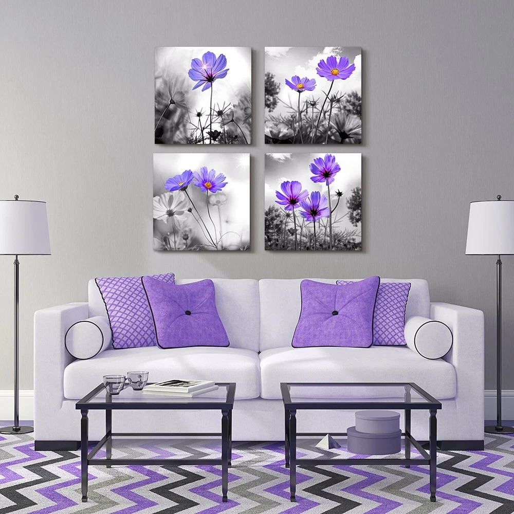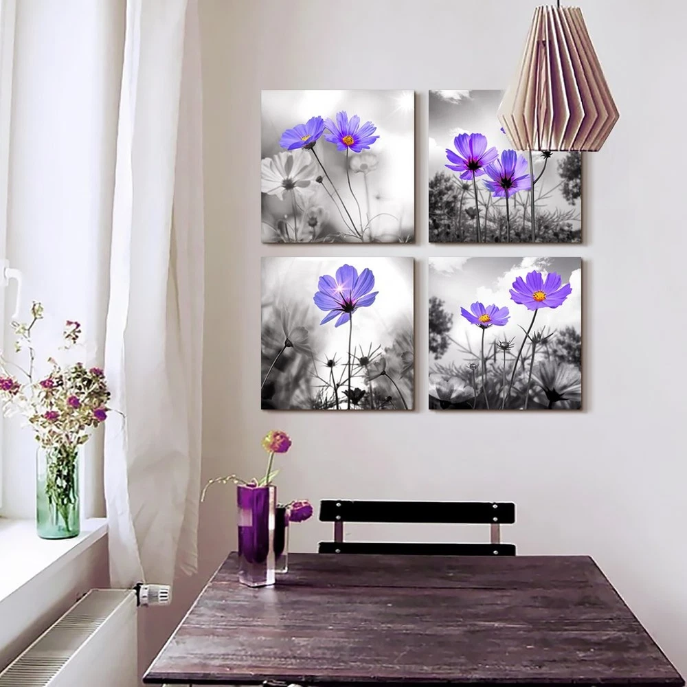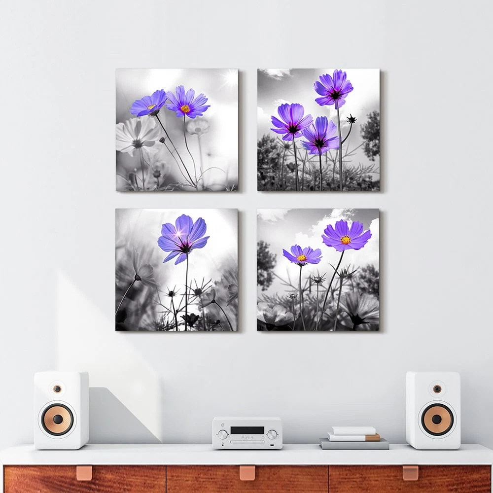 wall art for living room Black and White purple flower Big Canvas Prints Wall Decor Artwork 16" x 16" 4 Pieces Framed Black Border Ready to Hang for bedroom kitchen Home Decoration with office Product Details Item Weight: 3.1 pounds Manufacturer: MHARTK66 Item model number: MH27-40+40-4P Is Discontinued By Manufacturer: No Date First Available: July 14, 2018 SIZE Each Canvas Panel is 16"x16" (40cmx40cm), Total 4 Panels.Canvas Wall Art Decor EASY TO HANGEach Panel Of Canvas Prints Already Stretched On Solid Wooden Frames, Gallery Wrapped, With Hooks And Accessories, Ready To Hang. Ease Of Maintenance: Nice Quality, Hd Prints On Premium Canvas, Waterproof, Uv Resistant, Fading Resistant Indoor Decor Wall Art. IDEAL CHOICEGood Idea For Home Interior Walls Decor Such As Living Room,Bedroom,Bathroom,Office,Guest Room,Hotel,Bar,Kitchen,Dining Room Wall Decor And Others Wall Art,Thanksgiving Day Christmas And New Year. It'S A Great Gift Ideal To Your Friends. ORIGINAL DESIGNMHARTK66 Is A Brand Adhering To Original Designs. Wall Pictures Works that Cover All Themes: Such As Abstract Wall Art, Beach Wall Art, Forest Wall Art, Black And White Wall Art, Flowers Wall Art,Animal Wall Art,Landscapes Wall Art,Botanical Wall Art, Inspirational Wall Art, Retro Wall Art, Modern And Contemporary Framed Wall Decor Art WARM REMINDERThere Is No Difference In The Product Itself, But Colors May Appear Slightly Different To Each User Due To Individual Monitors. Size Reminder :Please Measure Your Wall Properly And Make Sure You Pick The Right Size