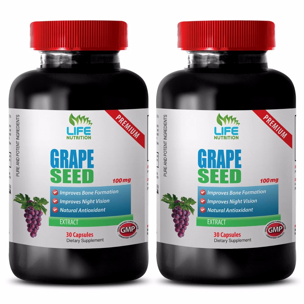 Grape Seed Extract 150mg Improve Night Vision Skincare And Beauty Product Antioxidant Properties Control Blood Pressure Improve The Health Of Your Skin Improve Skin Elasticity Immune Booster 2 Bottles,60 Capsules Made In USA WHERE DOES IT COME FROM? The seeds inside grapes used to be considered the worthless by-product of wine production. Come to find out, the seeds are extremely valuable. Instead of getting rid of them, grape seeds are in demand to create the extract. This fruit has been useful to humans even as early as the Neolithic period. Grapes were cultivated for its nutritional and beneficial properties. The Ancient Greeks cultivated the fruit to make wine, European folk used them to treat skin and eye problems. WHY IS IT HEALTHY? Grape seed extract is composed of a complex mixture of flavonoids, Vitamin E, linoleic acid, and phenolic procyanidins. These compounds can also be found in the skins and juices of the fruit. The active agents of extract are mostly polyphenols, which is usually the commercial reason why grape seeds are being extracted. Proanthocyanidins and catechins are the potent antioxidants in grape seeds that are believed to be 20 times greater than vitamin E and 50 times greater than vitamin C. WHAT ARE THE BENEFITS OF GRAPE SEED EXTRACT? Grape seed extract is an industrial derivative of grape seeds, extremely rich in antioxidants and oligomeric proanthocyanidin complexes. Grape seeds extract contains the most important nutrients your body needs. Grape seed extract may play a role in bone strength, oral health, healthy blood pressure and more. Grape seed extract appears to help so many different health conditions while exerting its effects body-wide. IMPROVES SKIN’S ELASTICITY: Polyphenols are also known to be excellent binders of collagen fibers, improving the condition of connective tissues, and overall maintaining the elasticity of your skin, joints, and other connective tissues. Grape Seed may be helpful in supporting your heart health, skin and brain. Grape seeds have been shown to improve flexibility in joints, arteries and body tissues such as your heart, for instance. Grape seed also helps improve blood circulation by strengthening capillaries, arteries and blood vessels. PROVIDE DIGESTIVE SUPPORT: This natural grape seed extract may support the digestive tract. Taking grape seeds extract daily may show a significant improvements in digestive problems. With grape seed extract and exercise you may notice the improvement in your fat profile, weight loss, blood pressure. This herbal grape seed extract supplement may promote digestive tract health thus helping you to lose weight and increase energy levels. GRAPE SEED EXTRACT FOR COGNITIVE FUNCTION: Grape seed extract appears to improve cognition, support cognitive ability and help with cognitive problems. Grape seed extract may even be useful as a cognitive function supporter. Our natural botanical dietary supplements may be beneficial for cardiovascular, cognitive, and metabolic function in males and females. Grape seed extract together with the antioxidants and nutrients compounds may improve low concentration, focus and memory. GRAPE SEED EXTRACT INCREASES ANTIOXIDANT ACTIVITY: Grape seed extract taken regularly may increase antioxidant activity in the blood. Grape seed extract outperformed vitamin C, vitamin E, and B-carotene in protecting the entire body system. In line with its anti-oxidant activity, grape seed extract might help to put the blood pressure under control. Antioxidants, like the ones found in grape seed, help protect blood vessels from outside influence. GRAPE SEED EXTRACT REDUCE FOOD INTAKE: This herbal grape seed extract may a useful weight management supplement to control calories intake. The antioxidants present in high quantities in grape seeds may stimulate the breakdown of fat. Grape seed extract reduces food intake, though not necessarily appetite, and the reduction of calories is very little. By helping to burn extra calories and help to maintain a normal weight this natural supplement may increase the energy levels by burning fat. Supplement Facts: weight loss raps - GRAPE SEED EXTRACT 150MG 2B - grape seed and reservatrol supplement Grape seed extract** 100 mg (Vitis vinifera) (Standardized to 90-95% [90-95 mg] Oligomeric Proanthocyanidins) Grape skin extract** 50mg (Vitis vinifera) Other Ingredients: Capsule (cellulose, water), rice powder, magnesium stearate and silica. **From Leucoselect® brand grape seed extract made by Indena, a premium European herbal extract manufacturer. Contains No sugar, salt, dairy, yeast, wheat, gluten, corn, soy, preservatives, artificial colors or flavors. SUGGESTED USE: As a dietary supplement, adults take one (1)vegetarian capsule, two (2) times daily with meals, or as directed by a health care professional. Serving Size: 1 Capsule, Servings Per Container: 30 CAUTION: Do not exceed recommended dose. Pregnant or nursing mothers, children under the age of 18 and individuals with a known medical condition should consult a physician before using this or any dietary supplement. *These statements have not been evaluated by the Food and Drug Administration. This product is not intended to diagnose, treat, cure or prevent any disease. GREAT QUALITY SUPPLEMENT