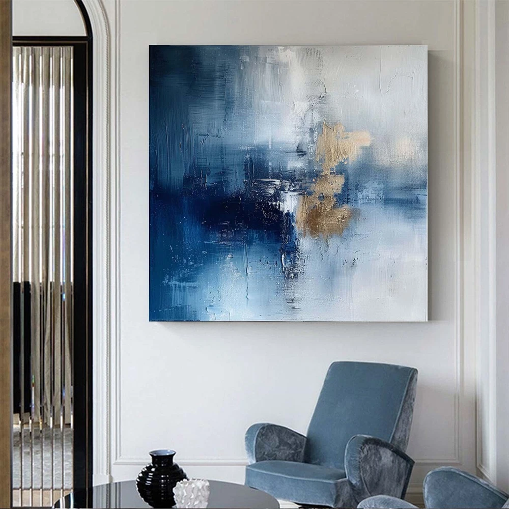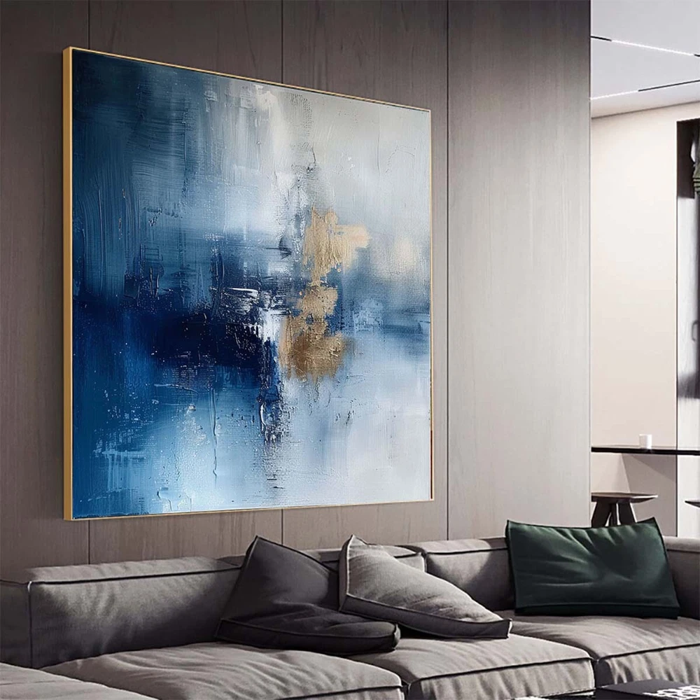 white Modern blue Abstract Oil Painting on canvsa Handmade wall art Living Room
