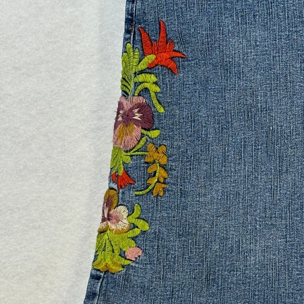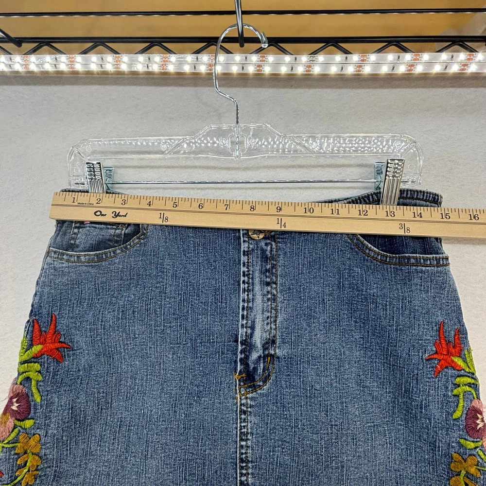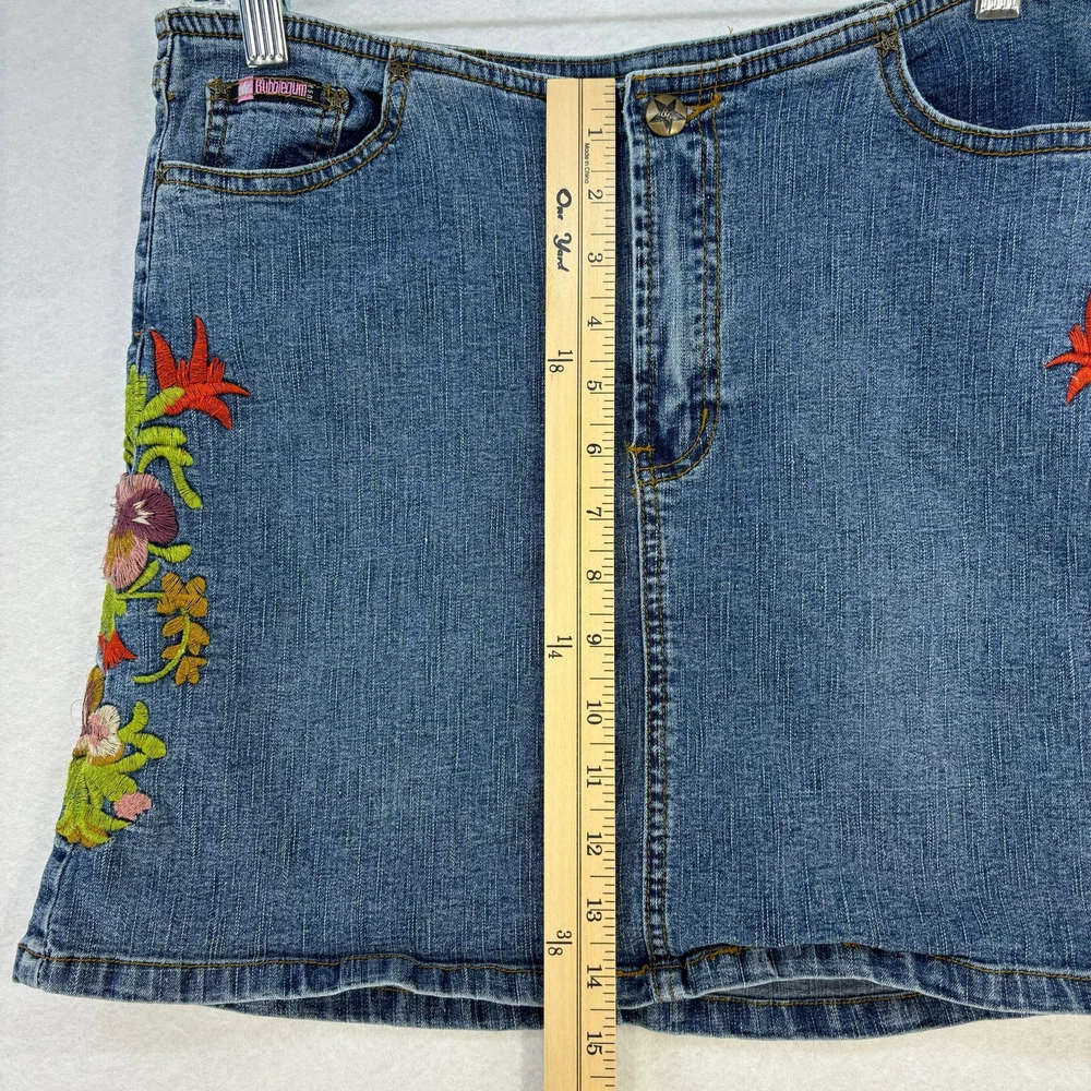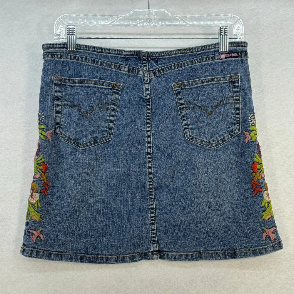 pre-loved, overall Good condition, waist elastic is slightly worn BUBBLEGUM y2k Vintage Floral Denim Mini Skirt Zipper Closure Size 11/12 #floral #mini #y2k #vintage #denim #summer #casual #spring See Photos for Measurements SK168