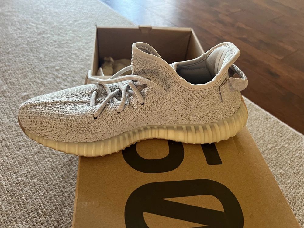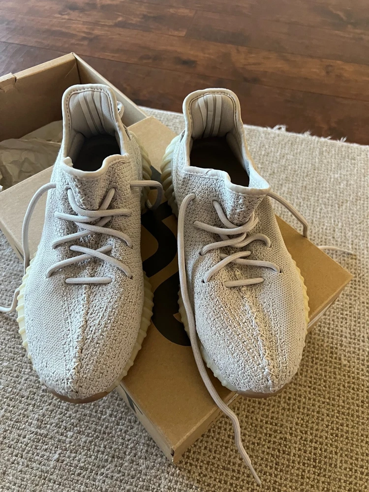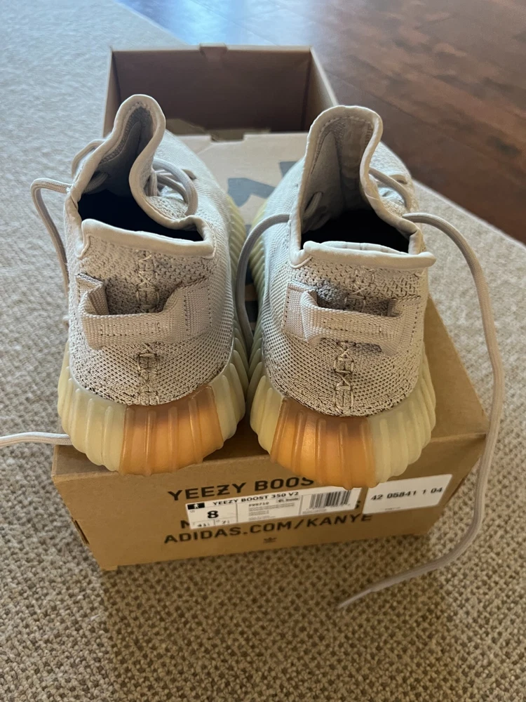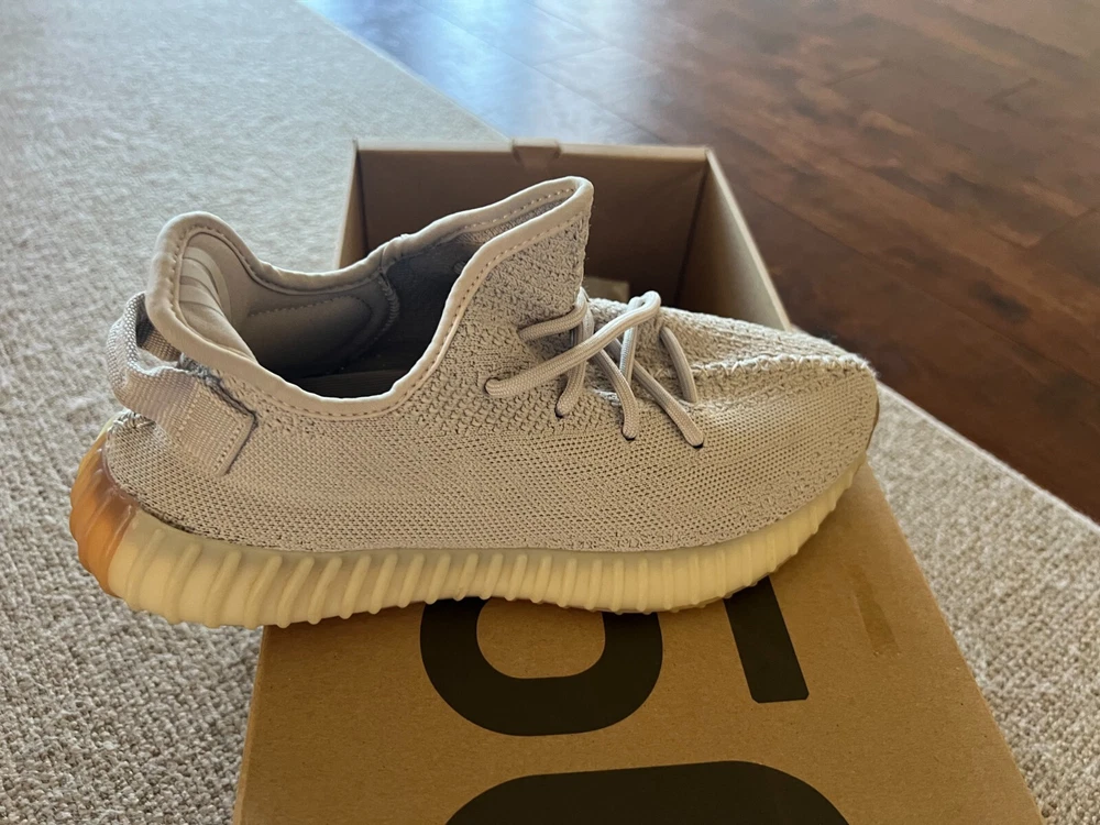 Elevate your sneaker game with these stylish and comfortable Adidas Yeezy Boost 350 V2 sneakers in Sesame and Gray. Designed for men, these athletic shoes have a UK shoe size of 7.5 and a US shoe size of 8. The sleek and trendy design of these sneakers is perfect for any casual or athletic outfit.Crafted with high-quality materials, these Adidas Yeezy Boost 350 V2 sneakers are durable and long-lasting. The gray and sesame color combination is perfect for any occasion and adds a touch of elegance to your wardrobe. These sneakers are part of the Adidas Yeezy product line and are perfect for any sneakerhead looking to upgrade their collection.